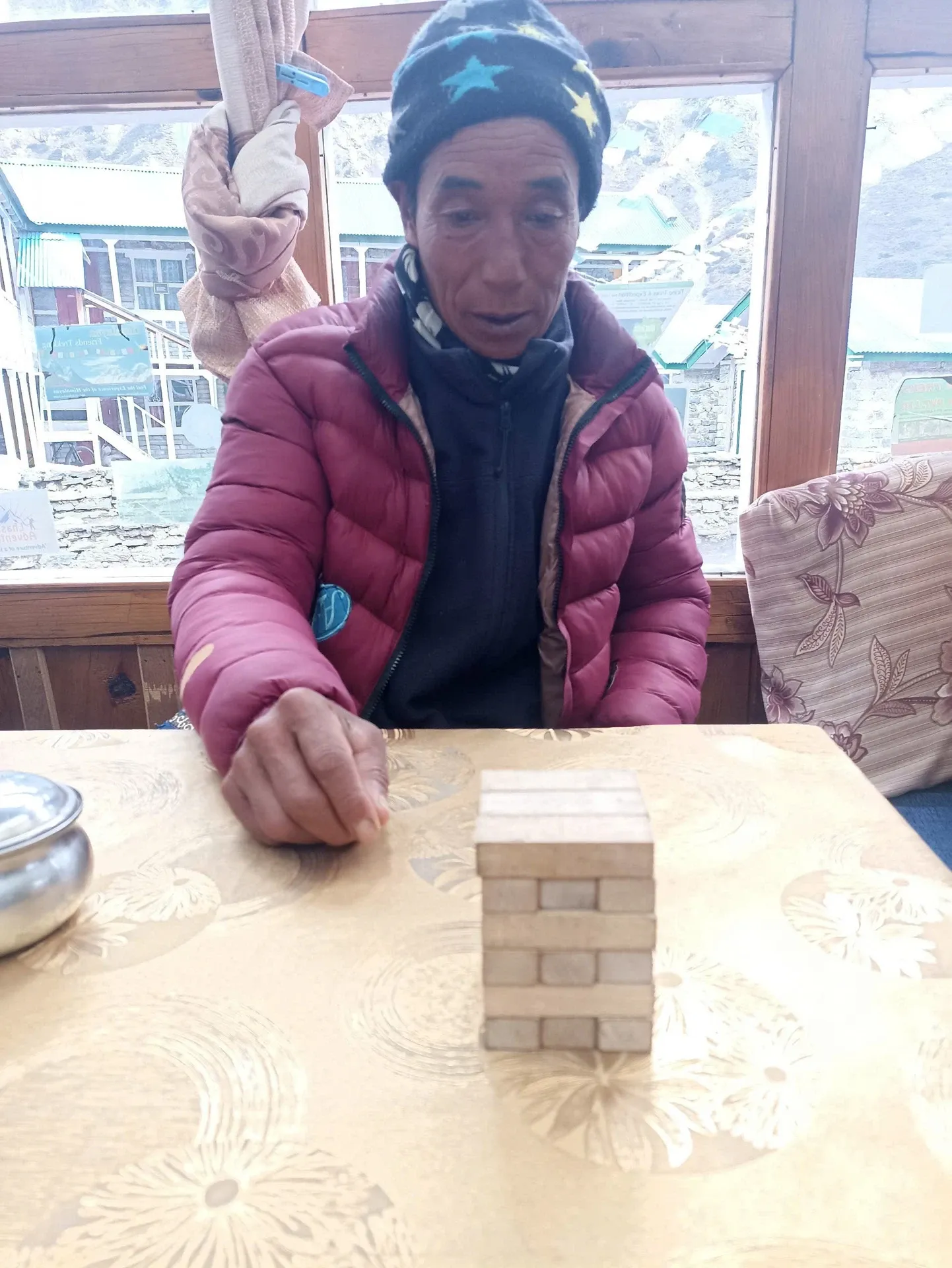 Sau đó tôi chơi trò rút gỗ với các Chú người Nepal. Trước mỗi lượt rút, tôi hài hước làm dấu (đưa tay lên trán và ngực 3 lần) rồi đọc to thần chú: "Om Mani Padme Hum." Hành động đó khiến mọi người cười phá lên, còn tôi thì vẫn rất nghiêm túc với chiến thuật của mình. Kết quả? Tôi thắng 3/5 ván trong sự cổ vũ nhiệt tình của mọi người!