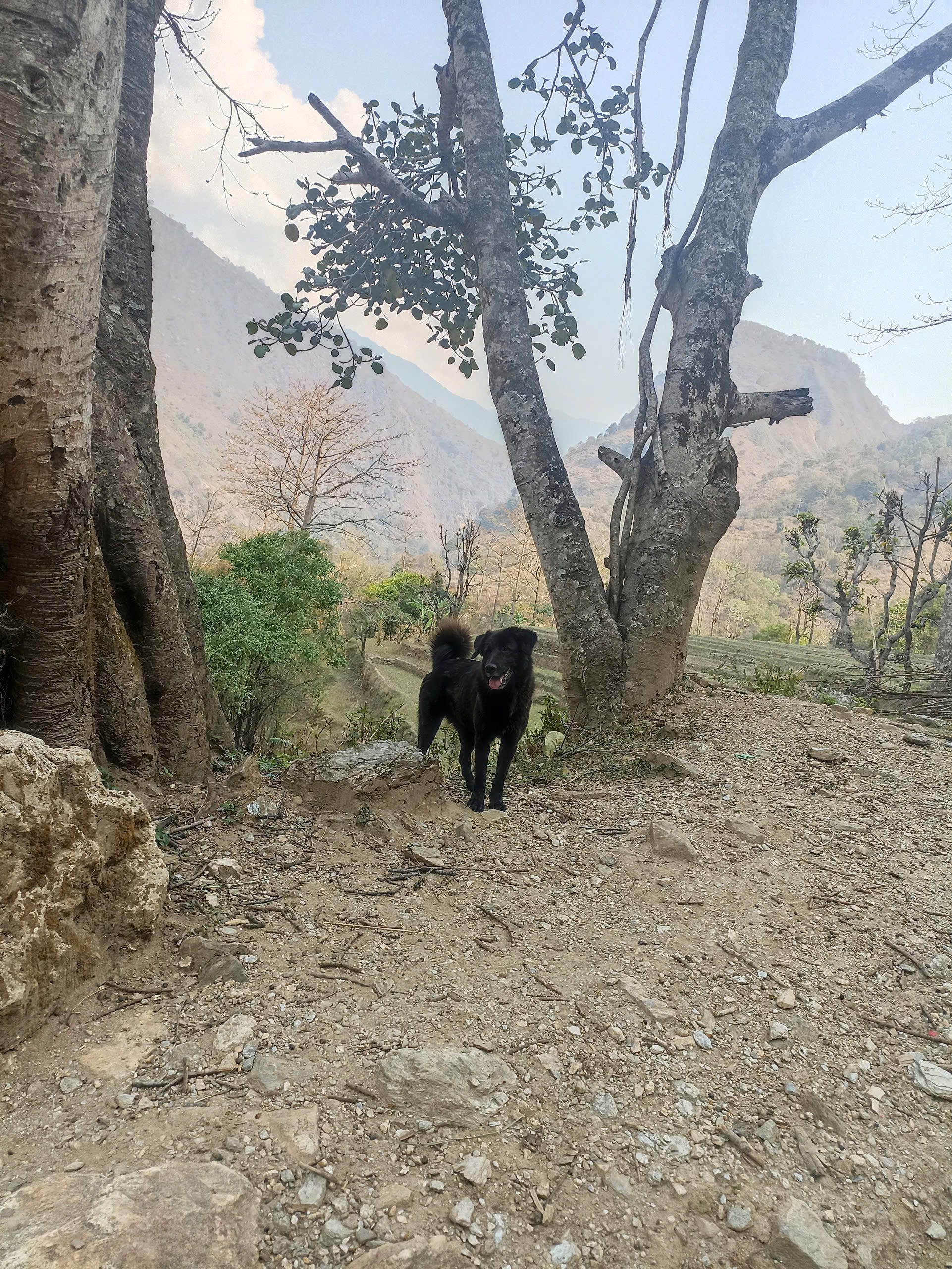 Có một điều đặc biệt là những con chó ở đây rất hiền và thân thiện. Có lẽ vì người Nepal họ không cần nuôi chó để giữ nhà. Có một bạn còn đi theo đoàn chúng tôi cả một đoạn đường dài. Nếu không phải bị một con chó khác to lớn hơn ăn hiếp, không chừng nó sẽ theo chúng tôi đến hết hành trình. 😂😂😂