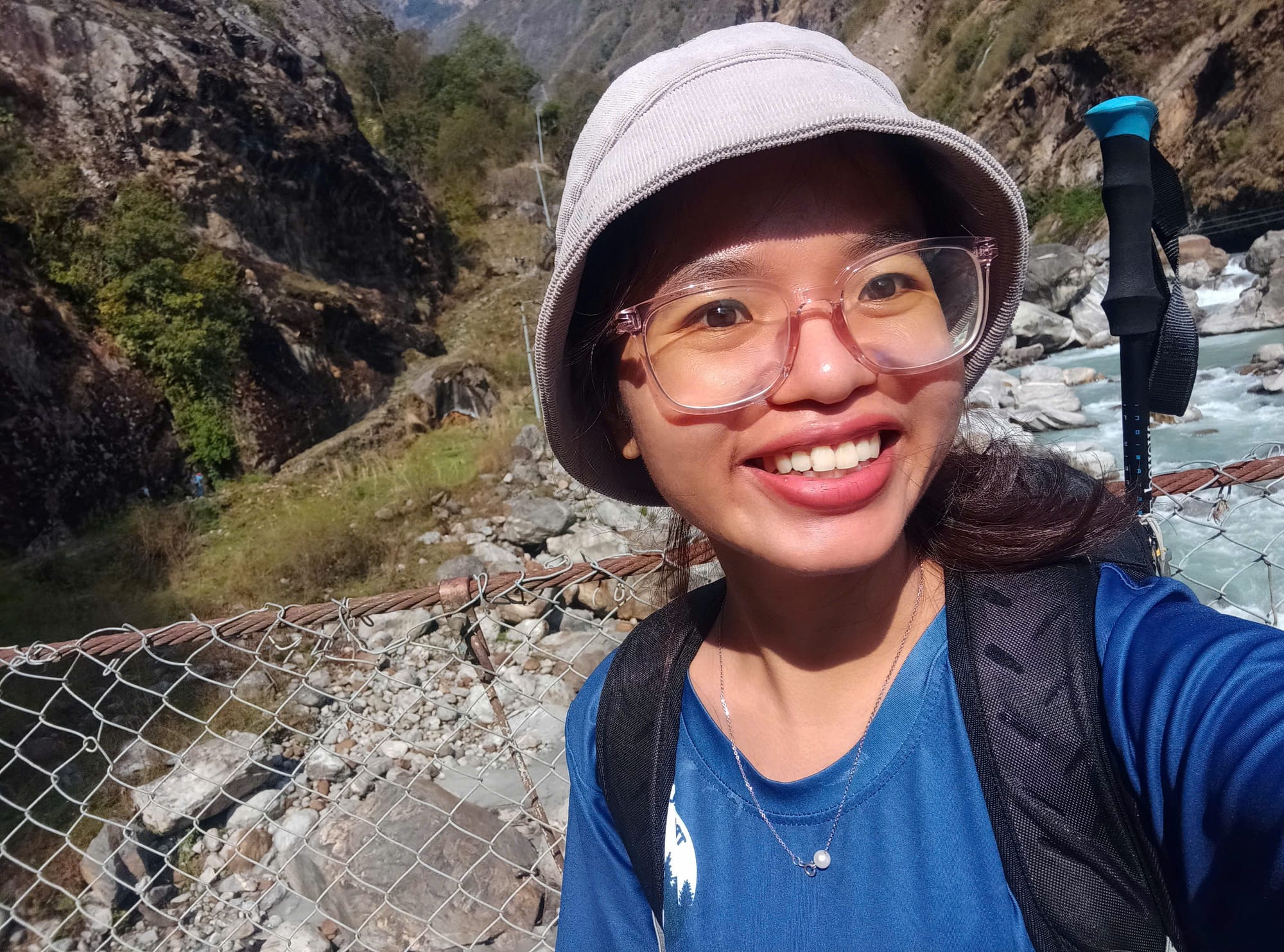 Chẳng mấy chốc, tôi đã đứng trước một cây cầu dây treo lủng lẳng vắt ngang dòng sông. Chiều rộng vừa đủ cho một người bước đi thoải mái, nhưng không dành cho những ai yếu tim hay sợ độ cao. Mỗi nhịp chân khiến cây cầu rung lên và đong đưa theo gió, như muốn thử thách lòng can đảm của lữ khách. Nhìn xuống là những tảng đá khổng lồ chồng chất lên nhau, lạnh lùng và bất động – một sự đối lập hoàn hảo với chiếc cầu mong manh đang chao đảo dưới chân tôi.