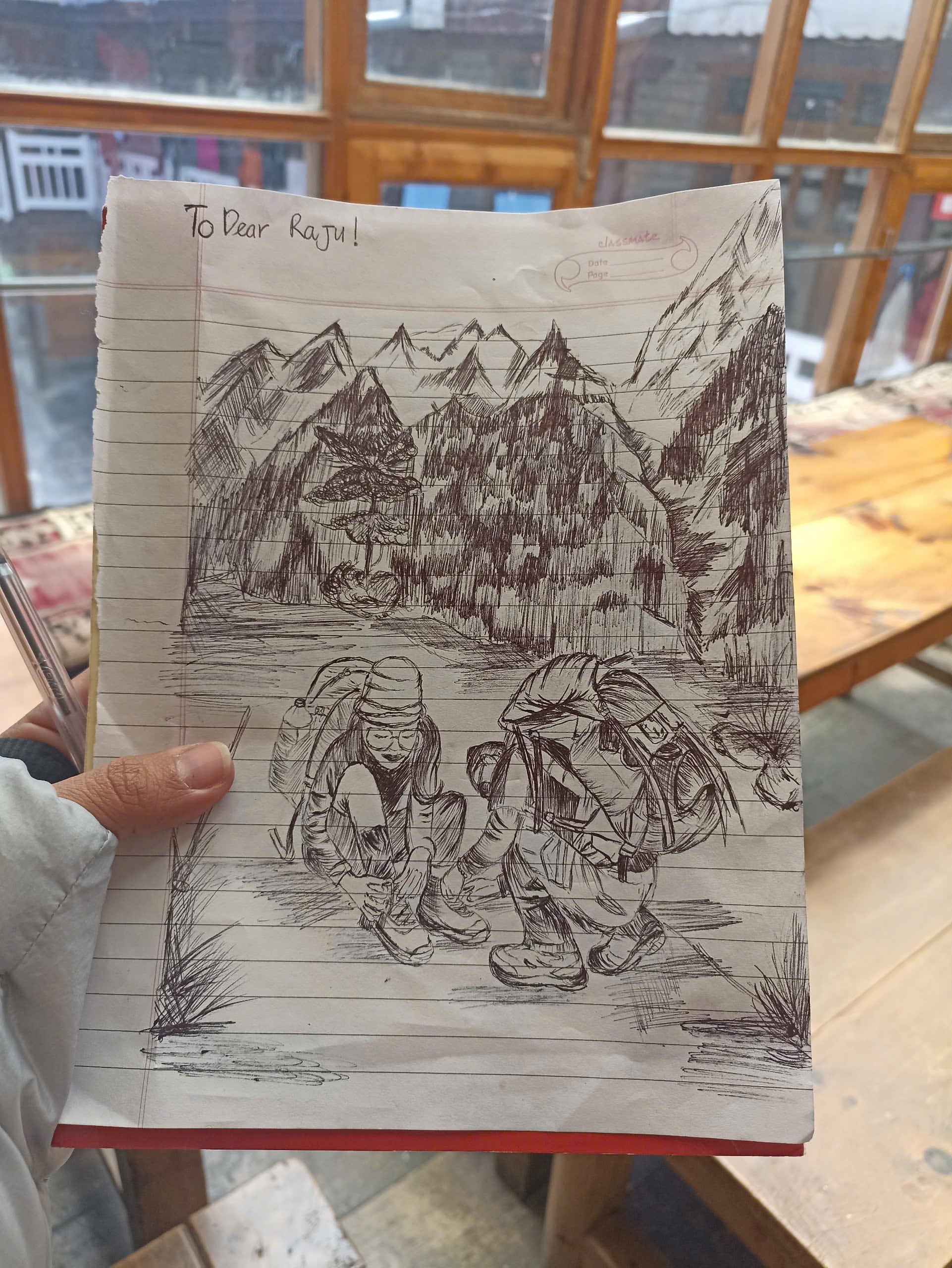 Hôm nay, tôi đã vẽ hai bức tranh—một tặng Raju, một tặng ông chủ tiệm bánh. Bình thường, tôi hiếm khi kiên nhẫn ngồi tỉ mỉ từng nét vẽ, nhưng hôm nay, tôi dành hàng giờ để chăm chút cho từng chi tiết. Có lẽ vì mãnh đất này mang đến cho tôi quá nhiều cảm xúc và nó khơi dậy nguồn cảm hứng trong tôi.