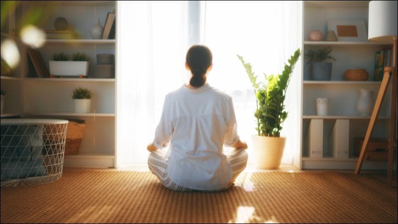 - Tìm một góc yên tĩnh trong nhà, bật nhạc không lời nhẹ nhàng, hoặc đơn giản là ngồi ngoài ban công ngắm cây cối. Không cần phải “đỉnh núi” mới thiền được đâu!